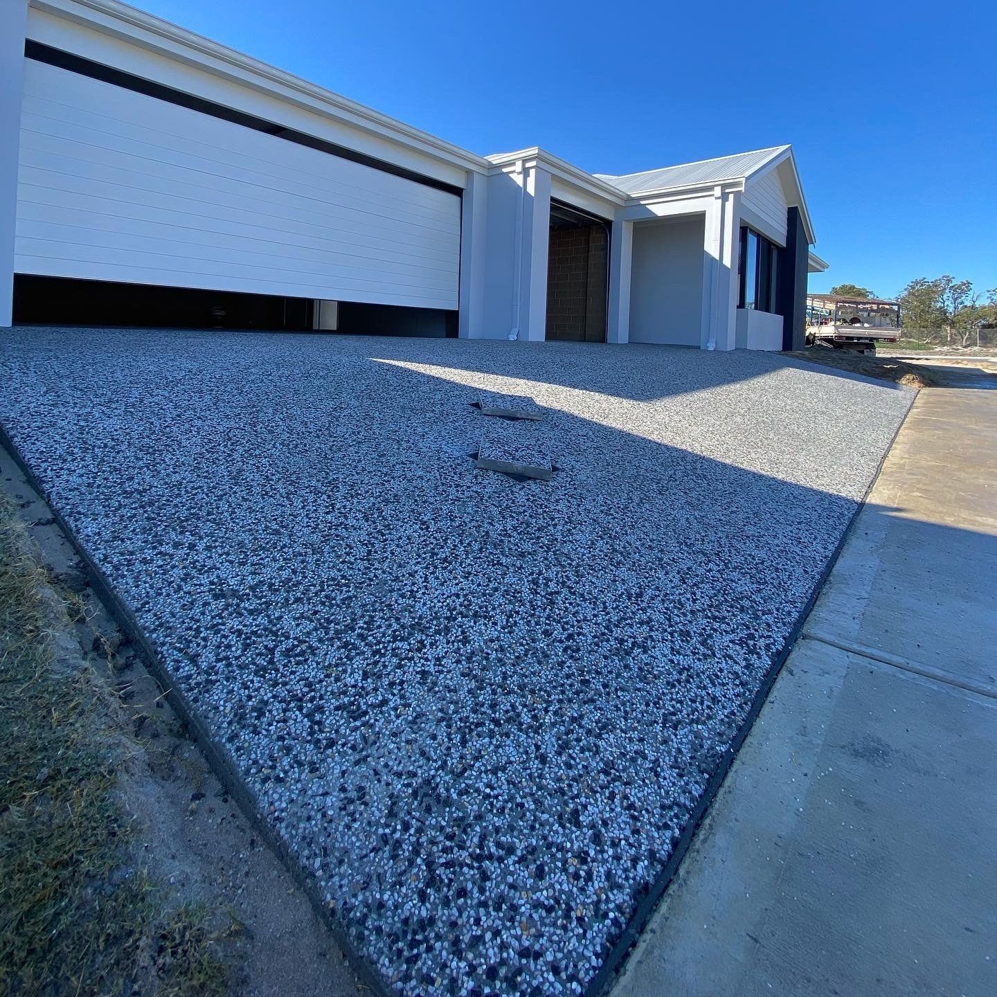 Create a visually striking and durable driveway with exposed aggregate concrete finishes. This popular choice for Mandurah homeowners combines natural stone with the strength of concrete, resulting in a slip-resistant, low-maintenance surface. Available in a wide range of colours and textures, exposed aggregate concrete driveways are perfect for those seeking a unique and stylish solution that can withstand the test of time.